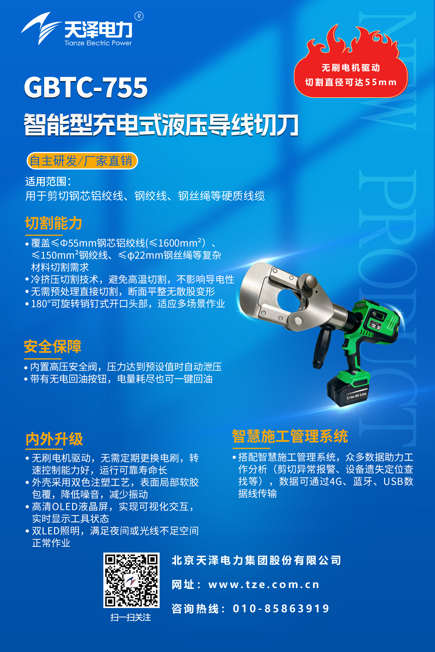 解决方案:GBTC-755智能型充电式液压导线切刀,免去定期维护的烦恼,使用寿命大幅度提升,动力输出更稳定,确保每一次剪切都干净利落!