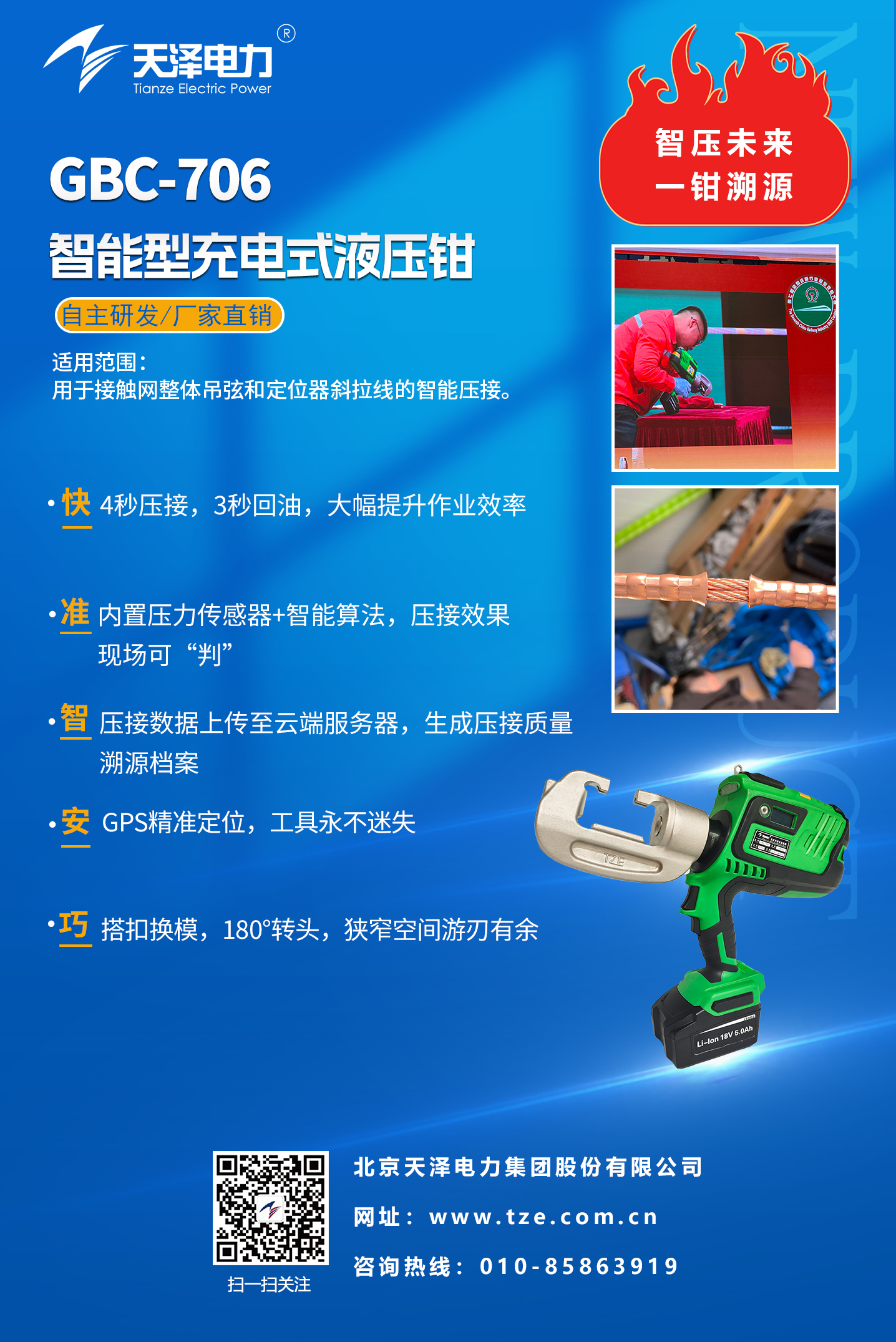如何让每一根吊弦的压接都经得起高速运行的考验?天泽电力重磅推出的 GBC-706智能型充电式液压钳,不仅是一把工具,更是您接入智慧施工管理体系的一张“通行证”。
