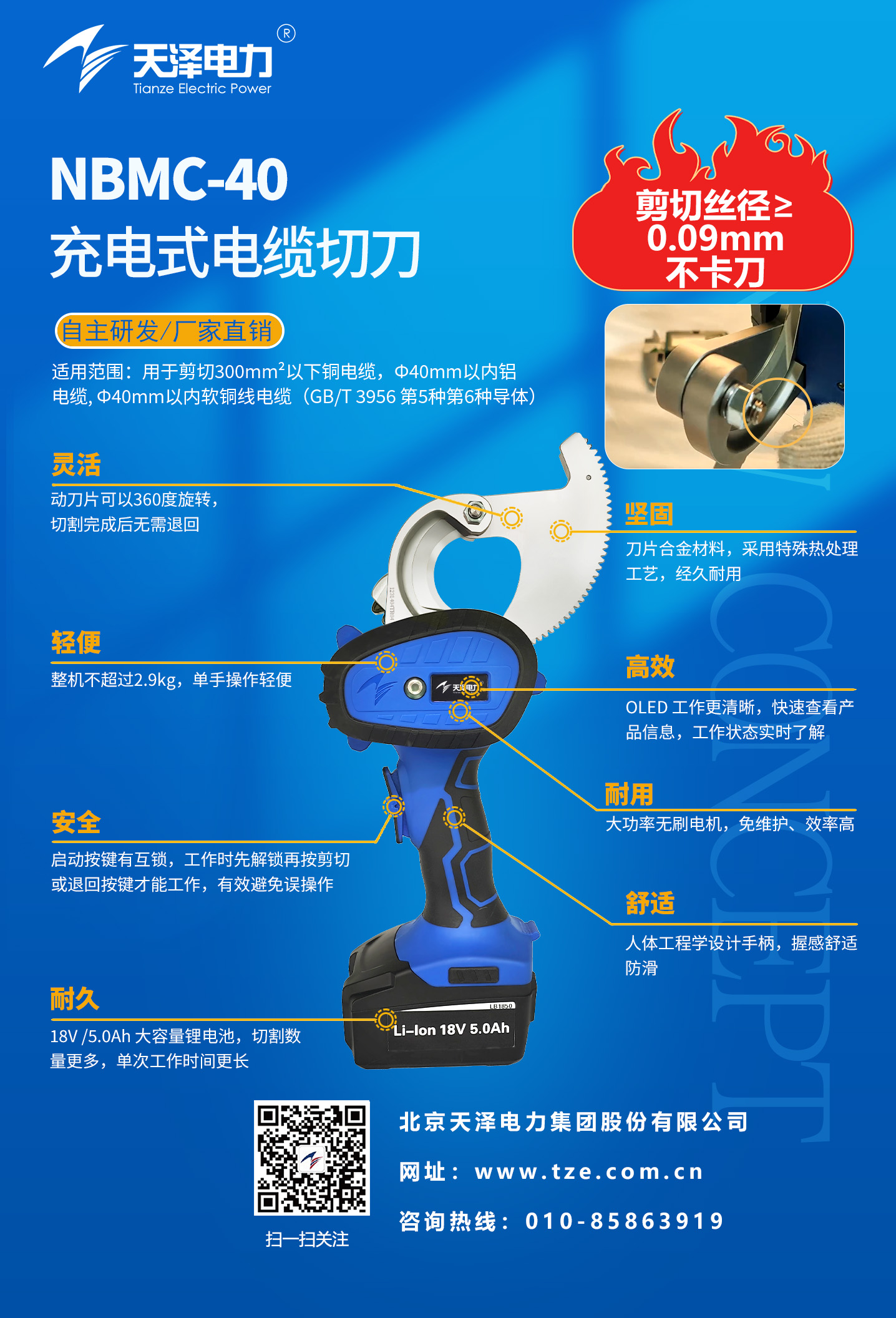 解决方案:如果以上痛点正是您的切肤之痛,那么,NBMC-40就是您一直在寻找的解决方案。它用于剪切300mm²以下铜电缆,Ф40mm以内铝电缆, Ф40mm以内软铜线电缆(GB/T 3956 第5种第6种导体)!它不仅仅是一把“新工具”,更是一场针对传统施工模式的“效率革命”。